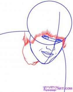 Step 3.You made it to step three, congratulations. There are a lot more steps left. To get this step packed into the mud, work on the other important features of his face. Justin Bieber has a noticeably strange nose. Without that nose, it wouldn't look solely like Justin. I know the face right now looks very freaky, but don't worry about it. Sketch out the pupils and the mere flesh of his lips. After you've completed this, your ready to hoe your way through the next step.